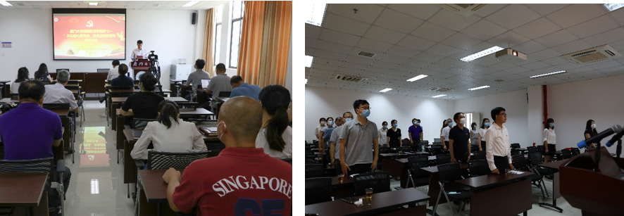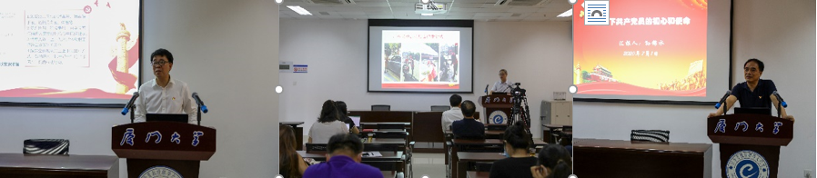 会议最后,党总支书记邱旺土、在职教职工第一党支部书记李金水、在职教职工第二党支部书记孙锦水分别以“‘继教人’的初心与使命”“为党旗添光彩”“疫情下共产党员的初心和使命”为题给学院全体党员上了三堂生动的系列“微党课”,围绕疫情面前中国共产党人是如何义无反顾,逆行而上,继续教育学院全体教职工又是如何立足岗位践行为党育人、为国育才的教育使命的重点内容,向与会人员深刻讲解了中国共产党为什么能成为始终走在时代前列,经受住各种风浪考验。