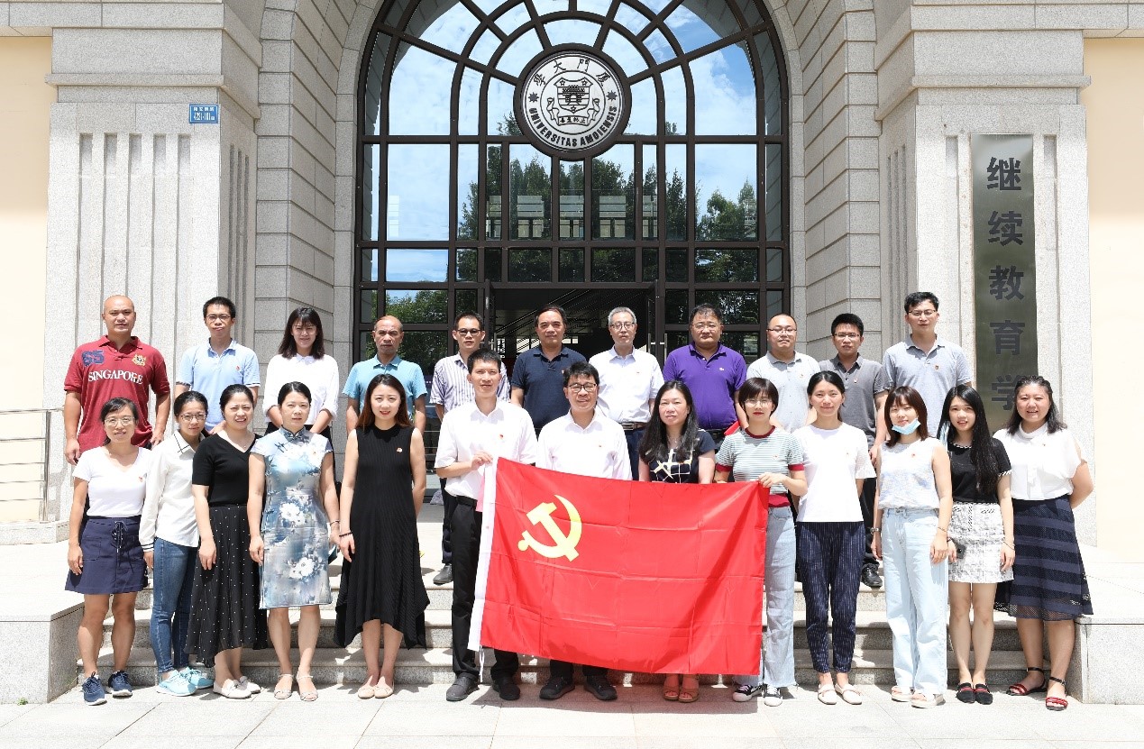 党总支书记邱旺土在总结讲话中与全体党员一起重温了党的辉煌历史,回顾了学院党总支过去一年在深入贯彻落实习近平新时代中国特色社会主义思想和党的十九大精神,认真贯彻落实新时代党的建设总要求,坚持思想建党、理论强党、制度治党,引领学院事业快速发展的过程中,特别是在助力学校对口支援隆德县脱贫攻坚和抗击新冠肺炎疫情工作中发挥的重要作用。他强调,要进一步继承和发扬党的优良传统,自觉肩负起新时代党赋予的光荣使命,紧紧围绕在以习近平同志为核心的党中央周围,始终坚持以党的创新理论武装头脑、指导实践。各支部要不断强化党支部标准化、规范化建设,作为密切联系广大党员干部群众的桥梁和纽带,不断增强为人民服务的本领和能力,切实提高党支部的创造力、凝聚力和战斗力。他要求,学院全体党员要以先进为榜样,不断提升自身素质,立足岗位、奋楫争先,把对党的忠诚和对党的教育事业的热爱转化为努力工作、推动学院发展路上的不竭动力,不断深化继续教育人才培养与社会服务功能,自强不息、止于至善,争做攻坚克难的先行者和排头兵,在“两个一百年”奋斗目标的历史交汇期为国家教育事业、为迎接中国共产党成立一百周年、学校百年校庆作出更大更新的贡献。