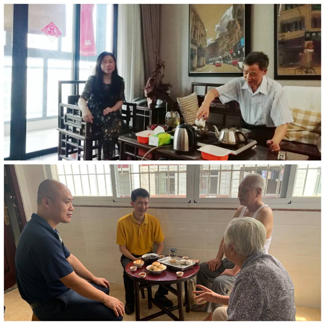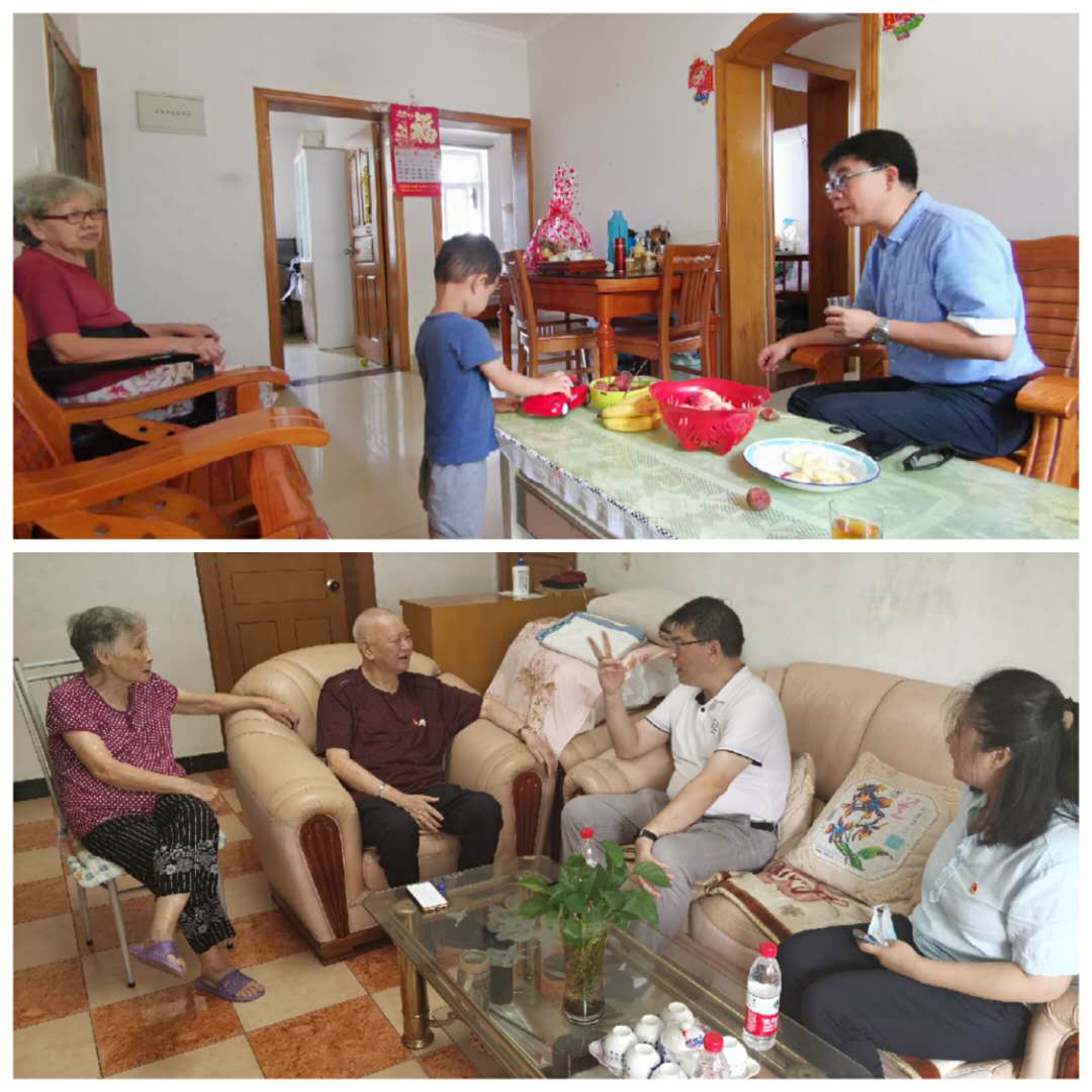 7月2日上午,我院党总支书记邱旺土、院长夏侯建兵、副院长郭如梅、黄明伟分别带队走访慰问学院离退休党员,向他们致以“七一“节日的问候,送去学院的温暖和关怀,并转达全院同志的美好祝愿和崇高敬意。