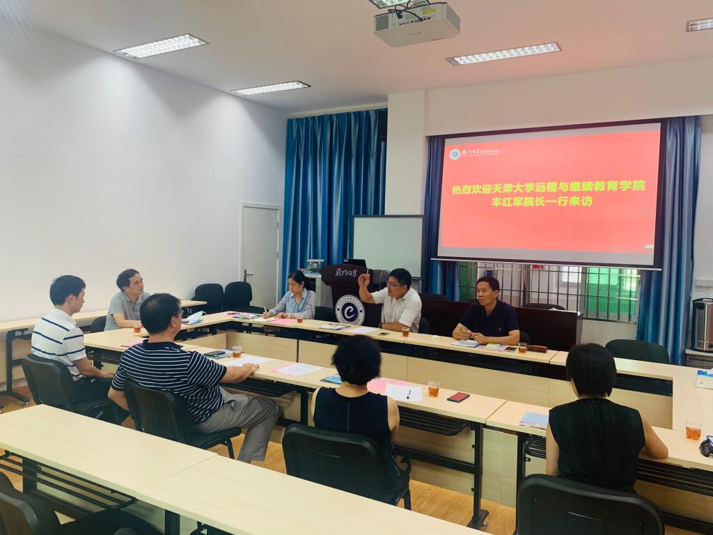 7月16日下午,天津大学远程与继续教育学院副院长丰红军、高端培训办公室副主任李英、国际项目中心主任黄健一行三人到访我院。我院院长夏侯建兵热情地接待了客人,并与客人交流座谈。我院副院长黄明伟、非学历教育中心主任孙锦水参加了座谈,同时邀请了我校海外教育学院\国际学院副院长黄冠华和工会主席、办公室副主任戴玉参加座谈。