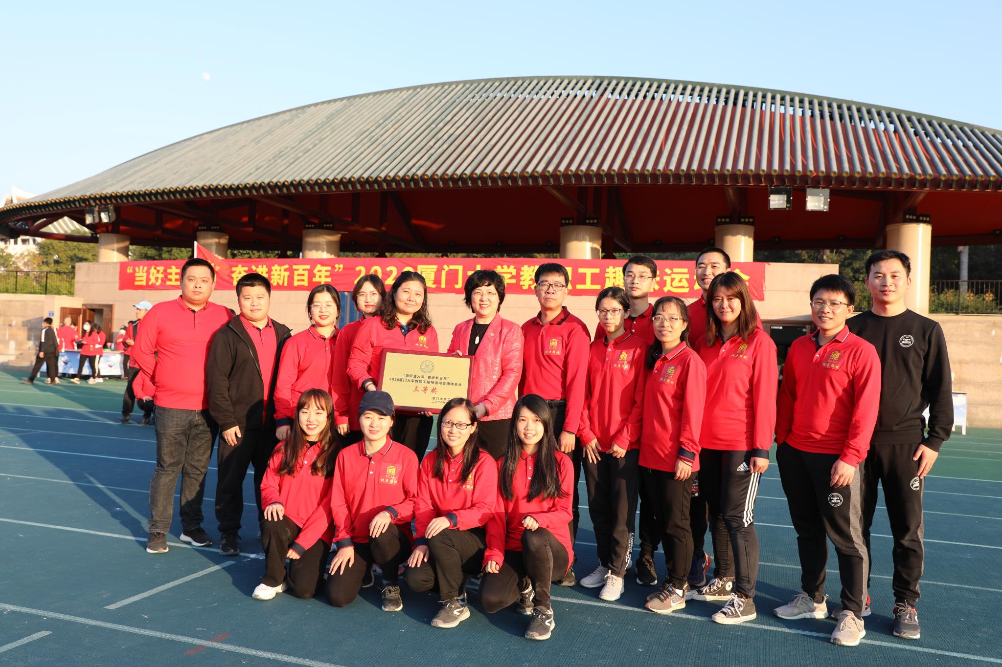 勇毅笃行,奋斗以成。12日27日下午,在学院党总支的带领下,在百年校庆倒计时100天的美好日子里,我院教职员工积极参加“‘当好主人翁,奋进新百年’厦门大学教职工喜迎百年华诞趣味运动会”活动,用拼搏的汗水喜迎学校百年校庆。