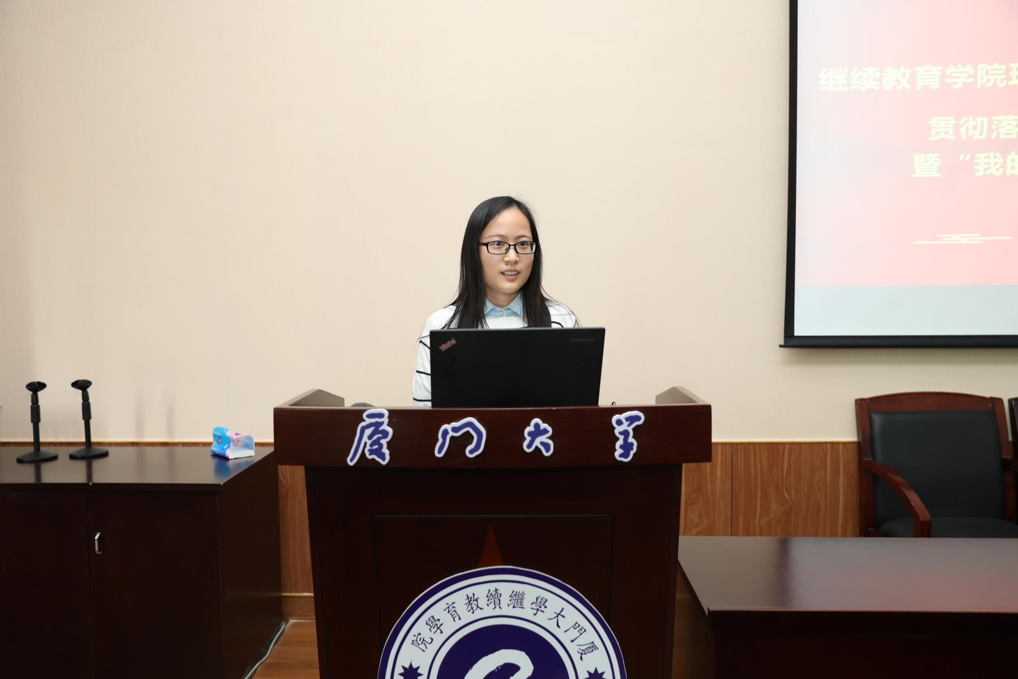学院财务部蔡丽霞老师作为“土生土长”的厦大人,围绕“生活在厦大、学习在厦大、工作在厦大”三个方面讲述了自己与厦大的情缘,在学习了习近平总书记贺信精神后,更加深刻地认识到,作为继续教育人,应当将陈嘉庚先生的办学理念发扬光大,为祖国培养更多有用的人才,为厦大贡献自己更大的力量。