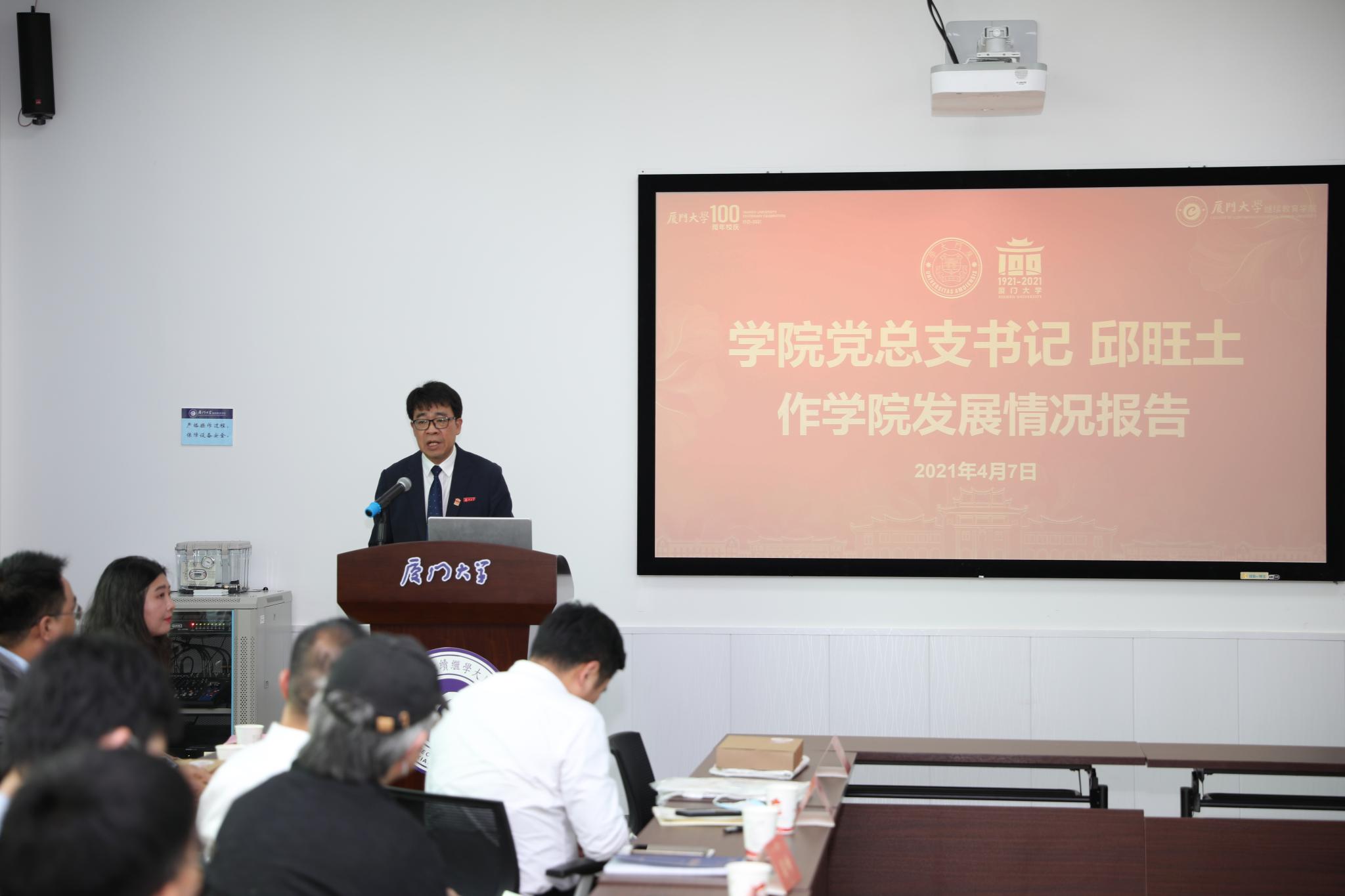 接着,邱旺土作学院发展情况报告。他回顾学院过往取得的成就,展望未来发展方向并提出具体举措。他表示,学院将认真学习贯彻习近平总书记致厦门大学建校100周年贺信精神,落实好“立德树人”“为党育人、为国育才”的初心和使命,把习近平总书记的殷殷嘱托转化为推动学院各项事业又好又快发展的强大动力。他强调,学院各项事业的发展仍需众人拾柴,继续教育的新篇章也离不开院内院外各方力量的关怀与支持,殷切希望广大校友、合作伙伴、社会各界友人,同学院全体教职工一起,继续为学院建设铺路搭桥、出谋划策,为成就一流继续教育贡献力量。