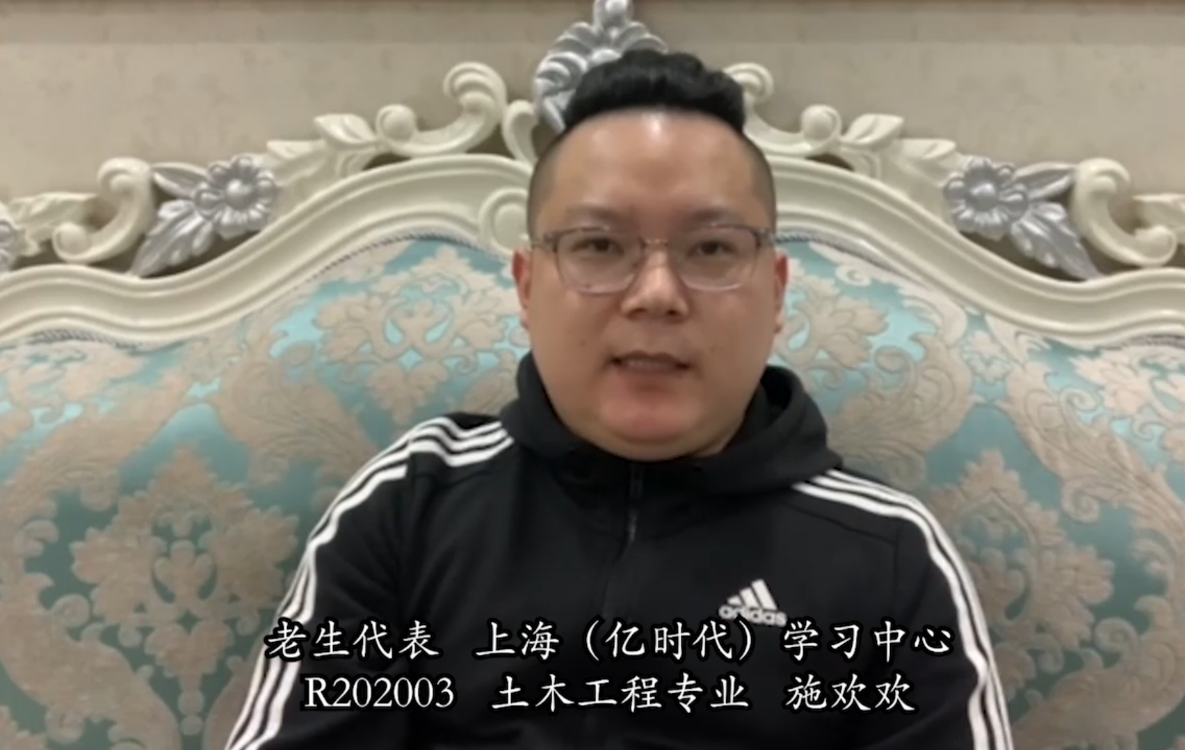 上海(亿时代)学习中心2020年土木工程专业施欢欢同学作为老生代表发言。他分享自己在厦门大学学习的切身感受,鼓励同学们充分发挥自己的主观能动性,时刻保持求知欲、上进心,永葆爱学好学的初心,克服困难、努力学习,为国家和社会做出更大的贡献。