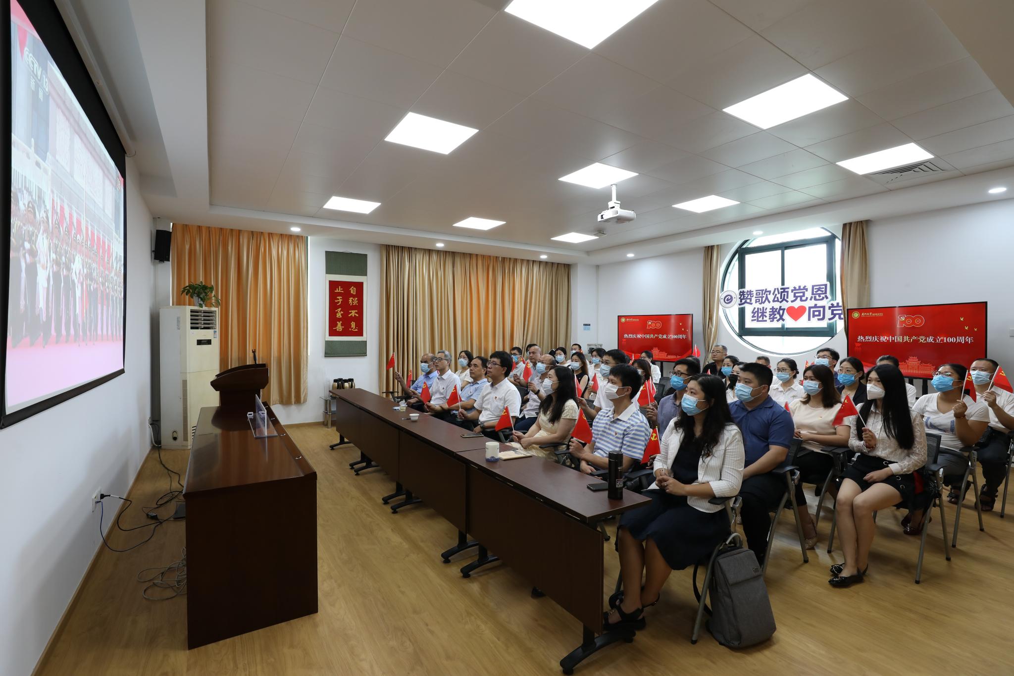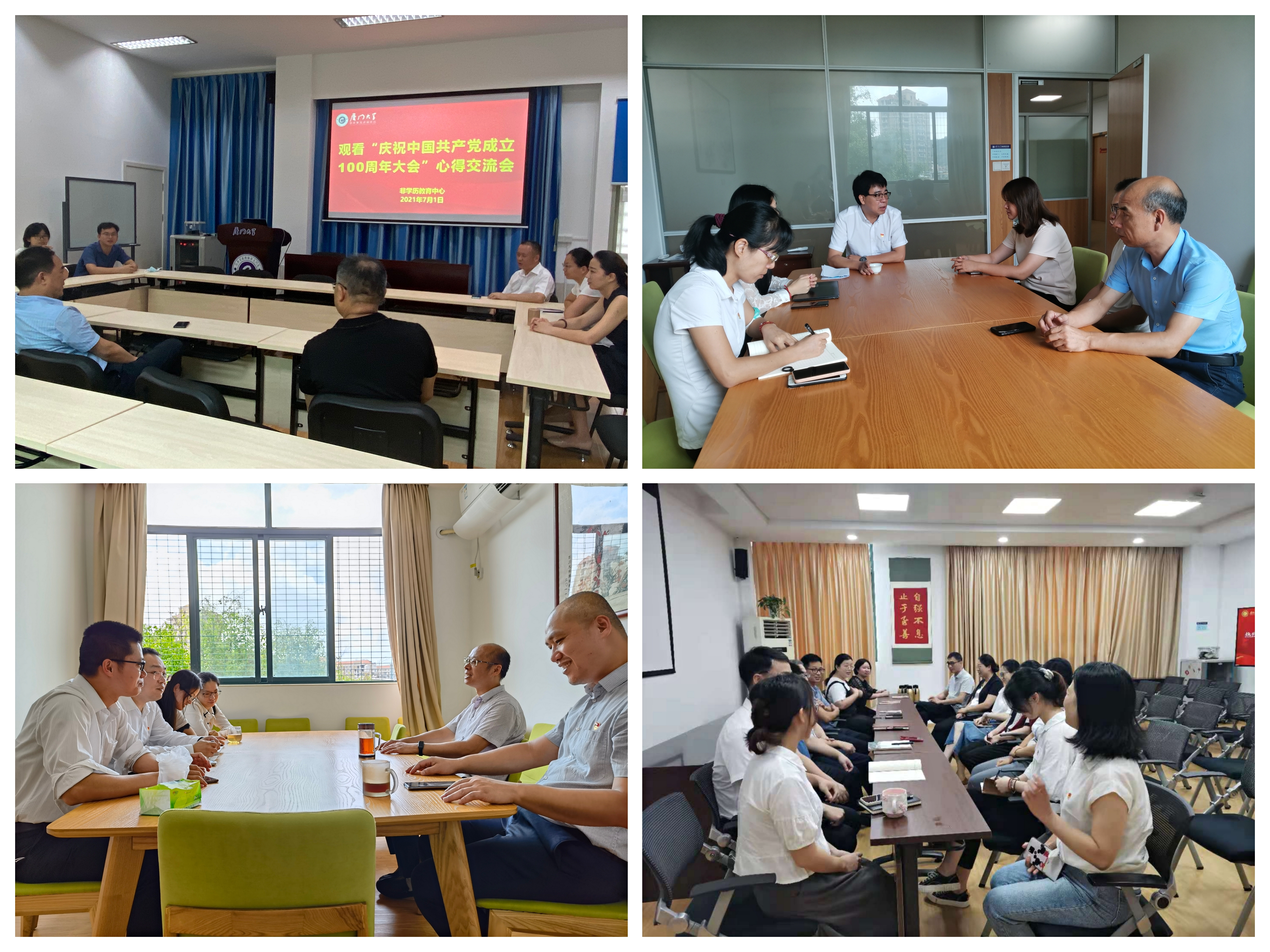 继续教育学院组织全体教职工在厦大海韵学生公寓二期食堂306会议室收看大会盛况并开展会后心得交流活动。全体教职工结合入党初心、工作实际,热议、畅谈收看大会的感受。