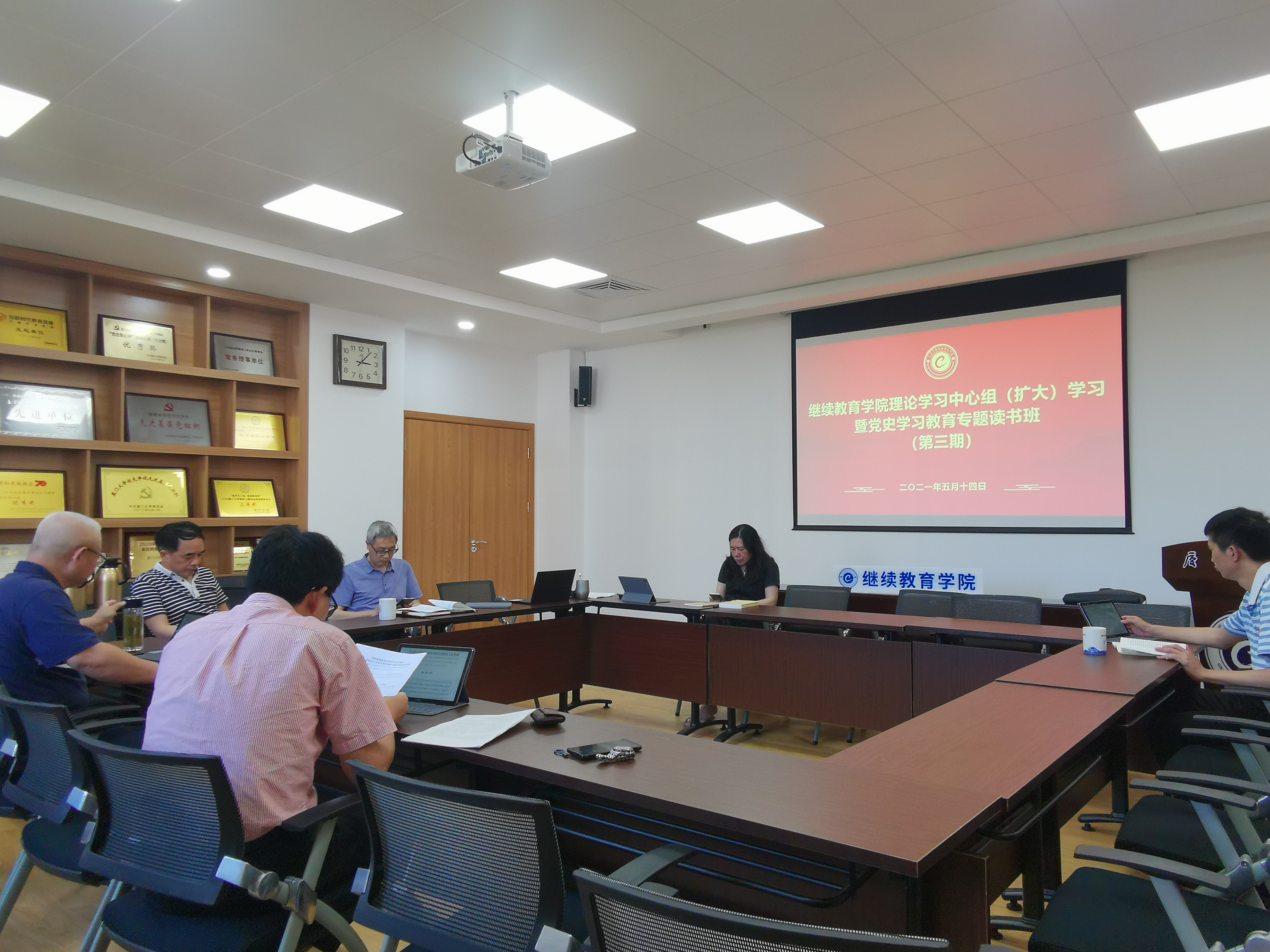 5月14日下午,继续教育学院党总支在海韵学生公寓二期食堂306会议室开展理论学习中心组(扩大)学习暨党史学习教育第三期专题读书班。学习活动由学院党总支书记邱旺土主持。