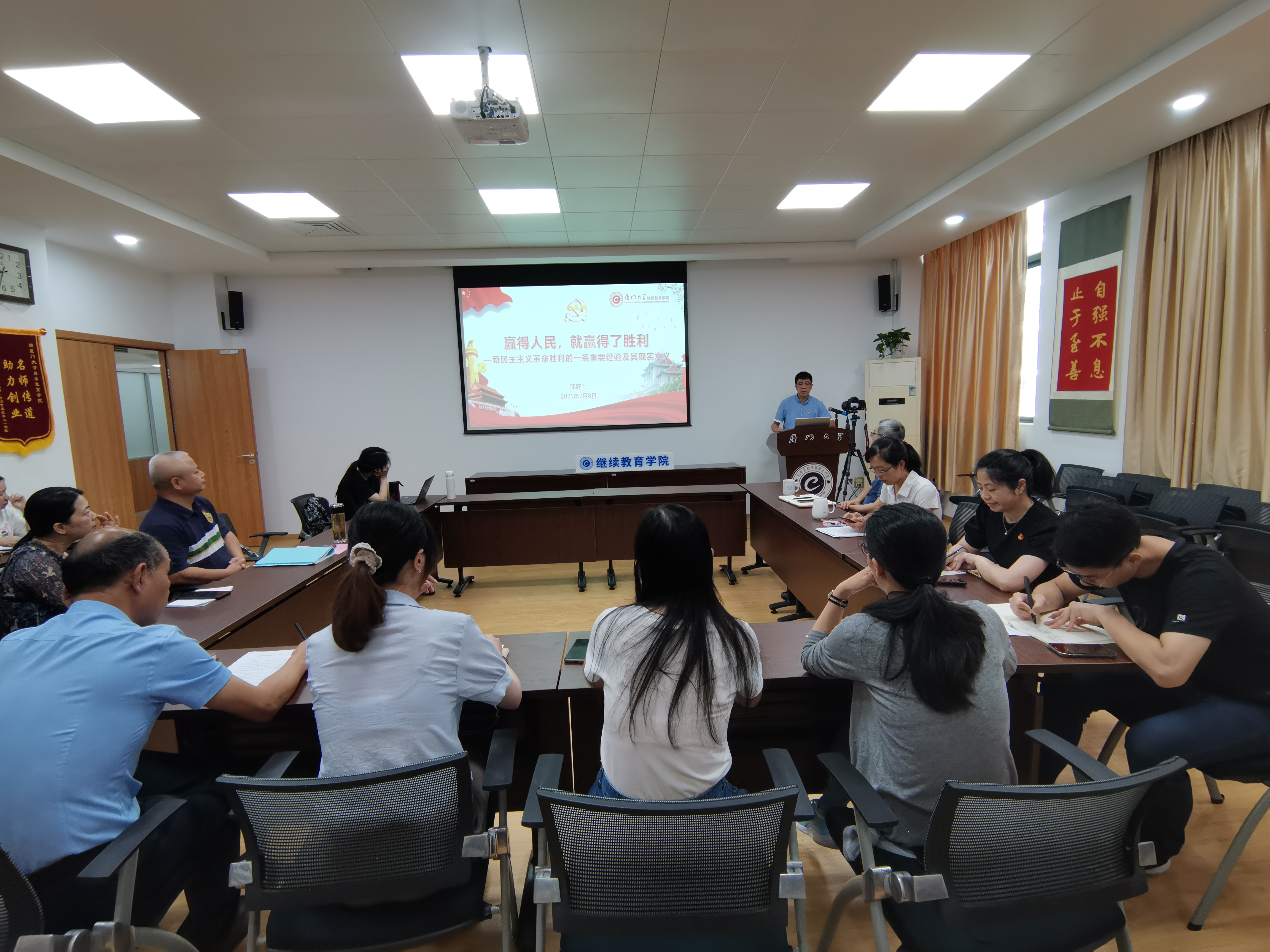 7月8日上午,继续教育学院在厦大海韵学生公寓二期食堂306会议开展“讲党课 学党史”党课活动。