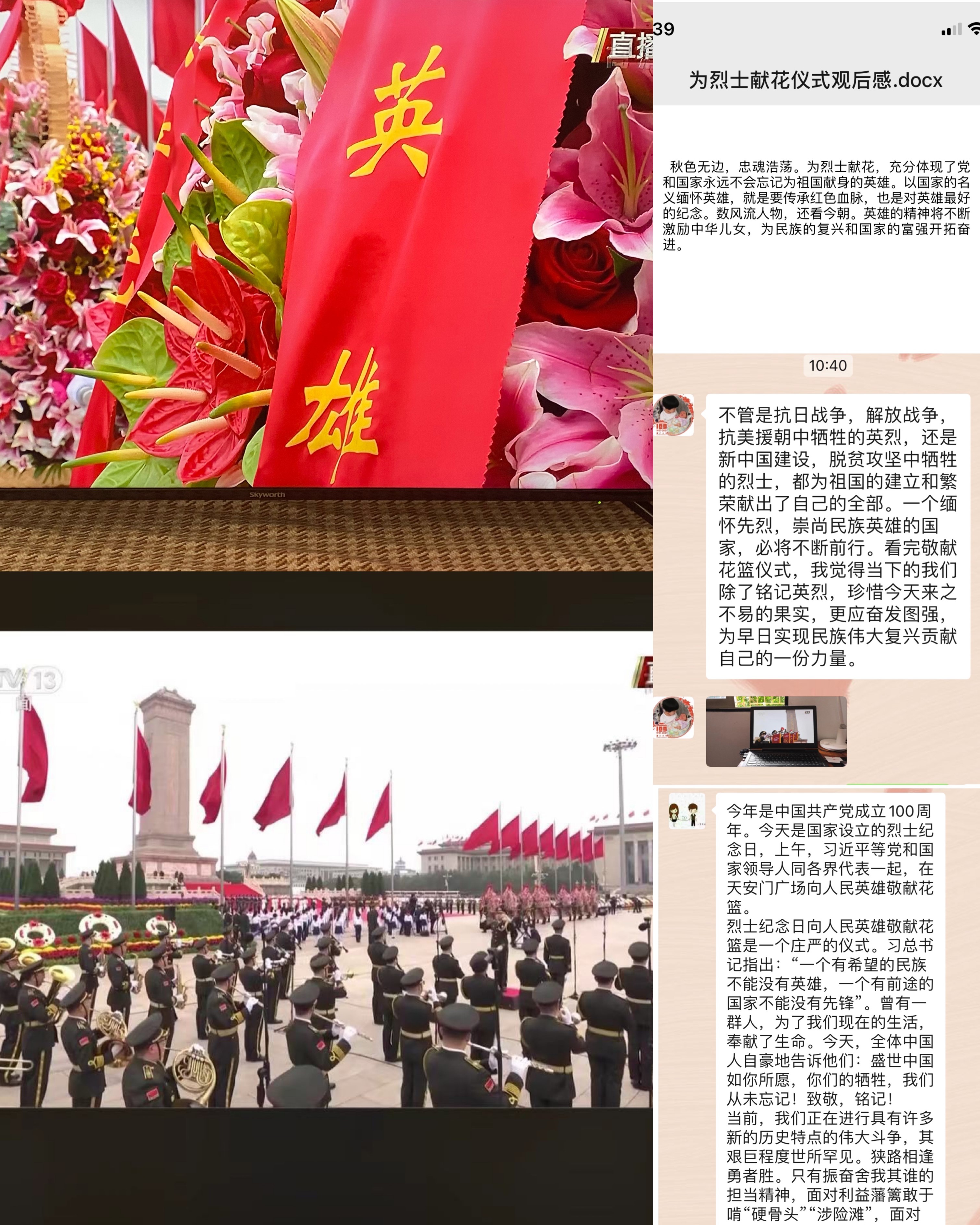 仪式观看结束后,大家纷纷表示赓续英烈精神,汲取奋进力量是我们每一个人的责任和使命,作为教育工作者,更应坚定理想信念、不忘立德树人初心,全面贯彻党的教育方针,围绕学校中国特色世界一流大学的建设目标,爱岗敬业、顽强拼搏,做新时代的继教筑梦人!