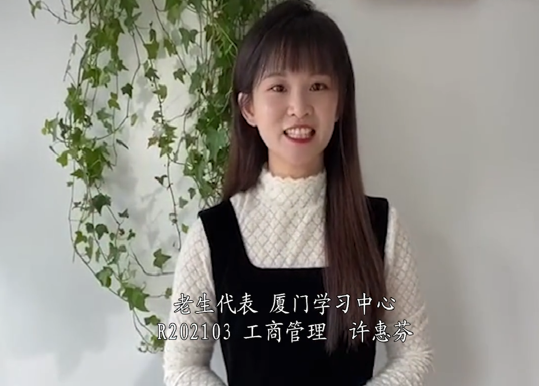 厦门学习中心2021年春季工商管理专业许惠芬同学作为老生代表发言。她分享了自己在厦门大学近一年学习期间的心得和体会,鼓励新同学以全新的面貌迎接新的征程。
