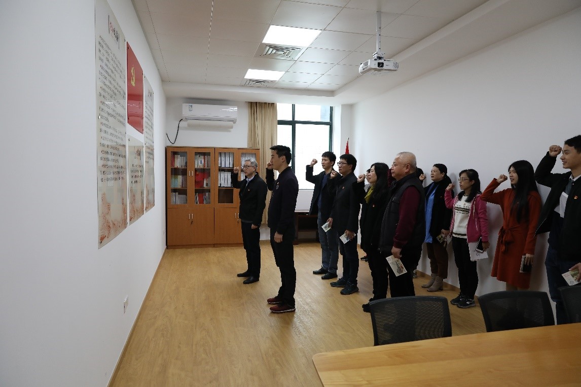 2021年12月23日,我院在职教职工第一党支部在学院305党员活动室,组织新党员宣誓、老党员重温入党誓词。支部全体党员参加活动,联系支部院领导,学院党总支书记邱旺土、副院长郑庆喜列席指导。宣誓仪式由支部书记李金水主持。在李金水同志的带领下,新老党员们面对着党旗,庄严宣誓。
