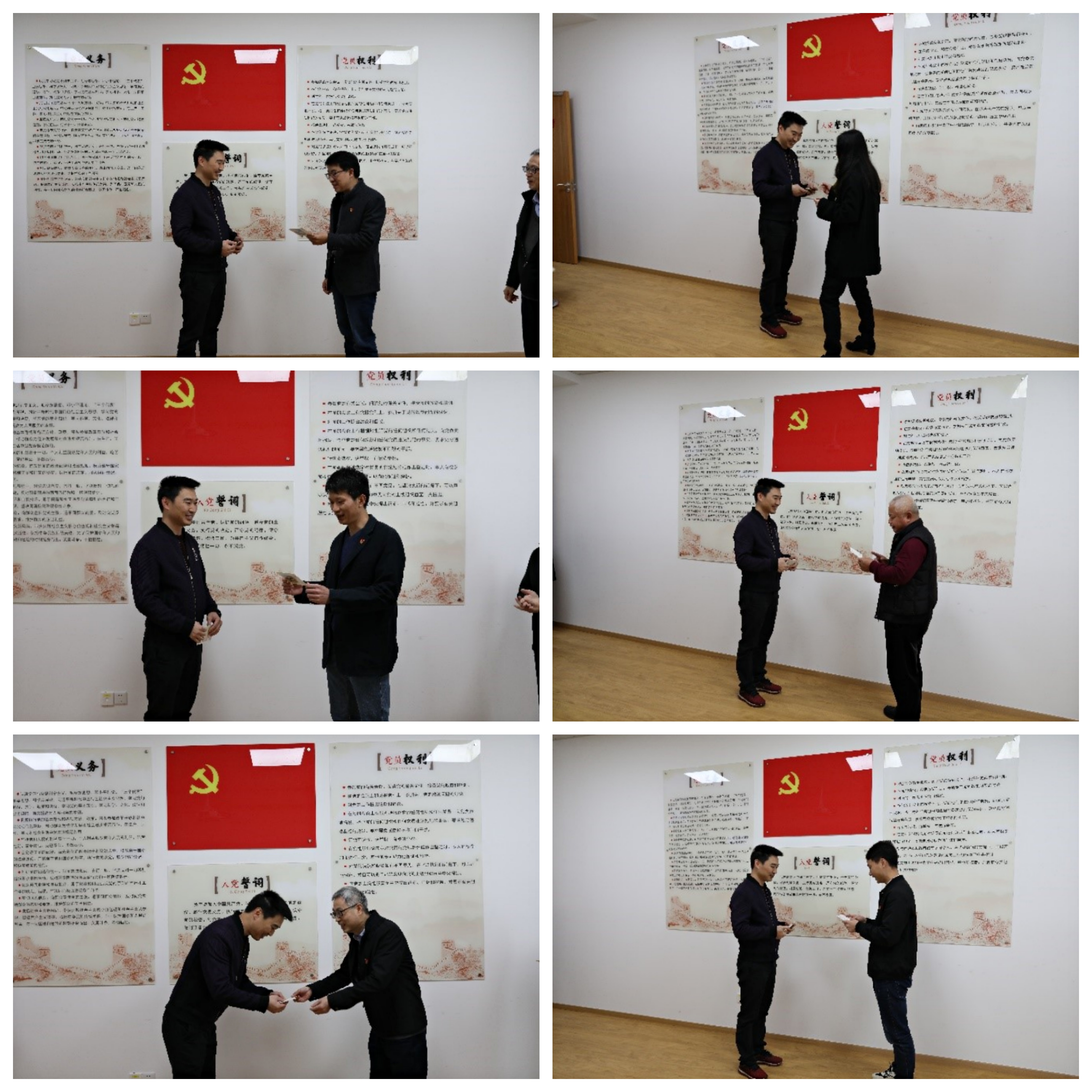 宣誓后,参加活动的老党员们向新党员张元荣同志赠送贺卡,对他成为一名预备党员表示祝贺,并寄予期望。希望他一朝光荣入党,一生坚守初心,恪守在党旗下的誓言,时刻牢记党员身份,严格要求自己,时刻保持共产党员应有的先进性,继续在工作岗位上发光发热,努力使自己成为一名优秀的共产党员。