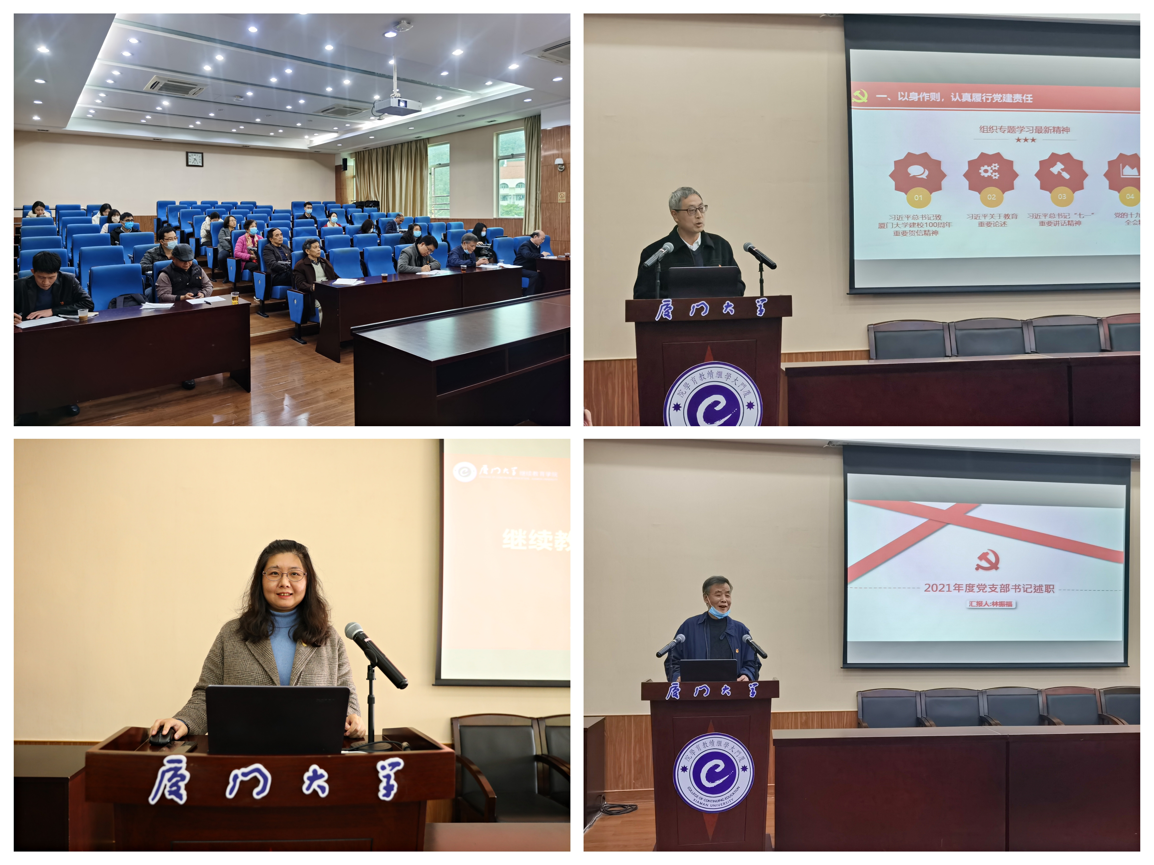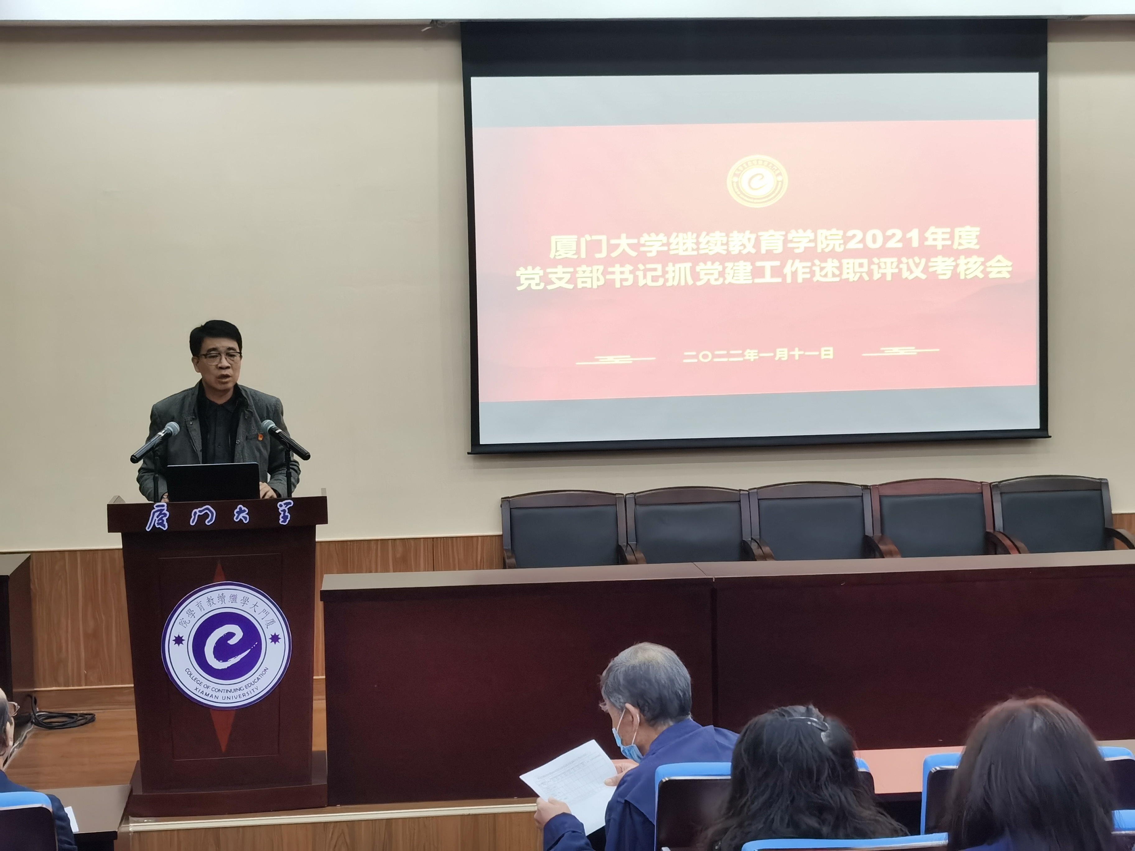 为进一步夯实学院党建工作基础,推动全面从严治党向一线延伸,2022年1月11日下午,我院在厦大海韵学生公寓教学楼404报告厅召开2021年度党支部书记抓党建工作述职评议考核会议。校党建工作联络员郑建华列席指导。会议由学院党总支书记邱旺土主持。