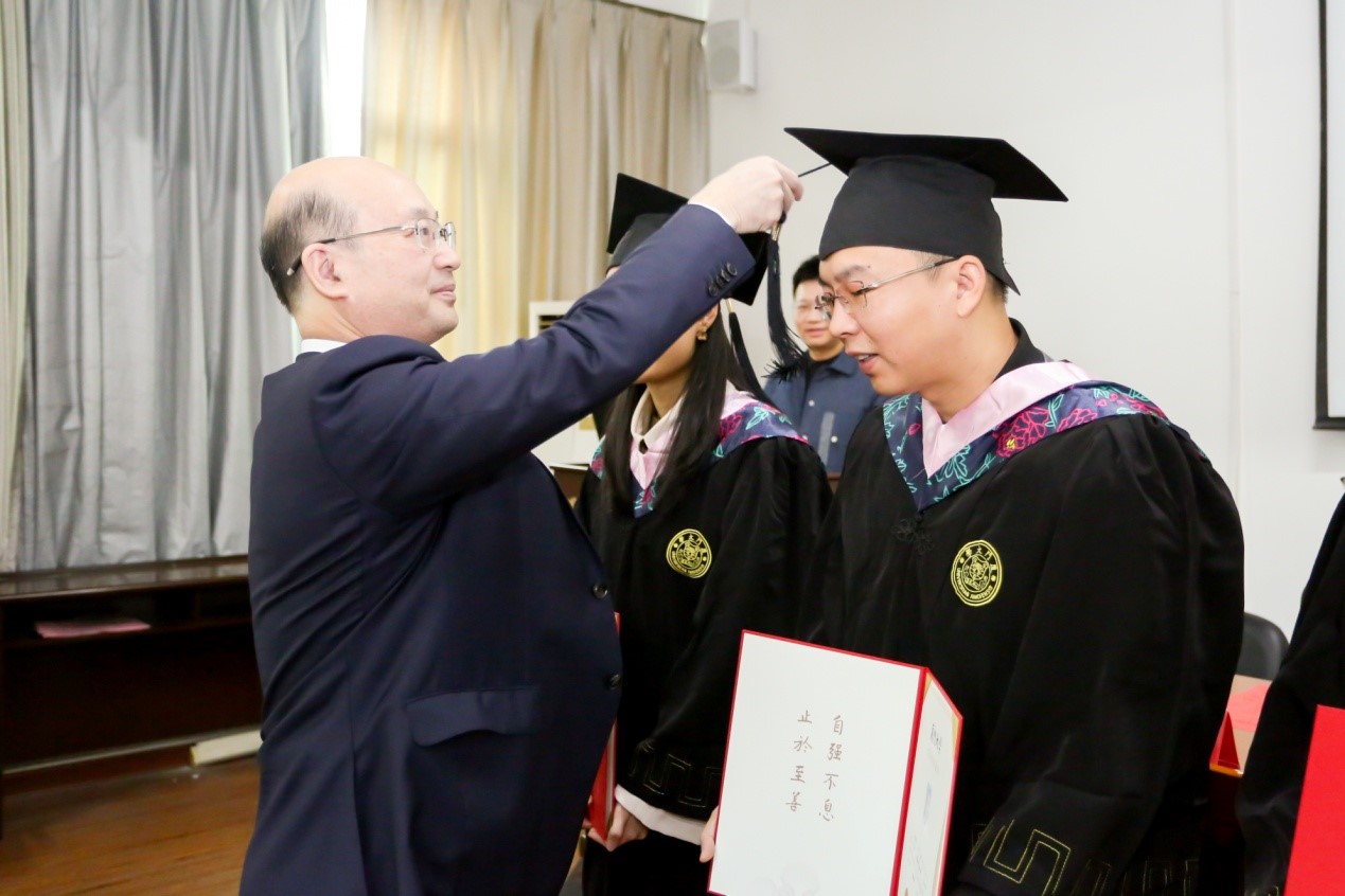 朱孟楠院长颁发学位证书并为同学们援正流苏。