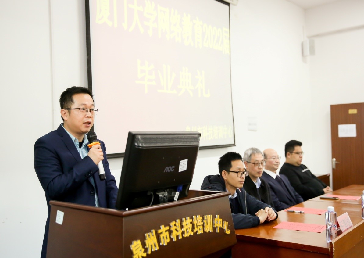 泉州市科技培训中心副主任陈思才代表中心对2022届毕业生圆满完成学业再次表示祝贺,并提醒同学们毕业不是学习的终点,而是一个新的起点,希望大家能够更好地规划未来。