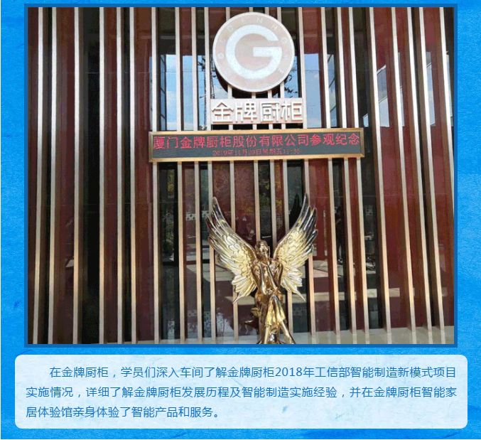在金牌厨柜现场教学环节,学员们深入车间了解金牌厨柜2018年工信部智能制造新模式项目实施情况,详细了解金牌厨柜发展历程及智能制造实施经验,并在金牌厨柜智能家居体验馆亲身体验了智能产品和服务。