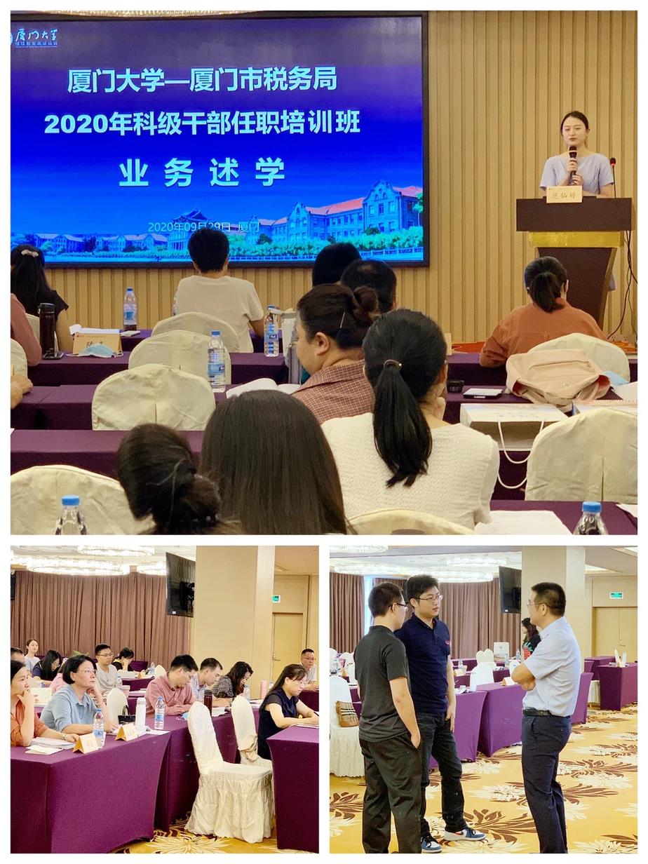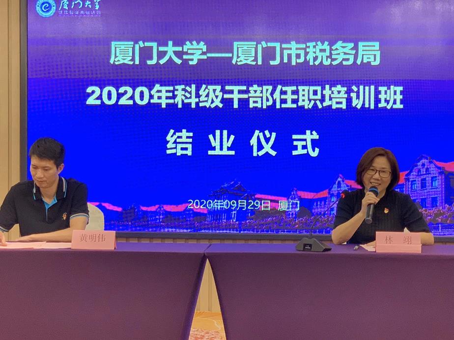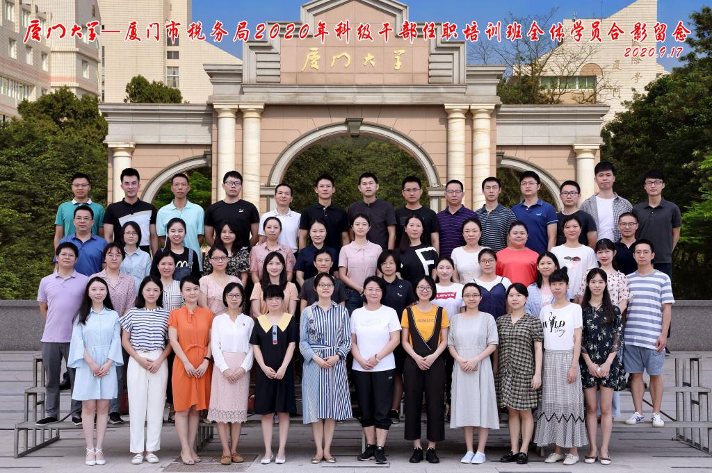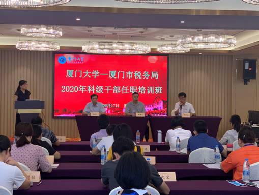 2020年9月17日上午,厦门市税务局50名新提任的科级干部学员参加了厦门大学——厦门市税务局2020年科级干部任职培训班开班典礼。厦门大学继续教育学院书记邱旺土,厦门市税务局党委委员、总经济师杨国全,厦门市税务局教育处处长蒋宇出席开班仪式。