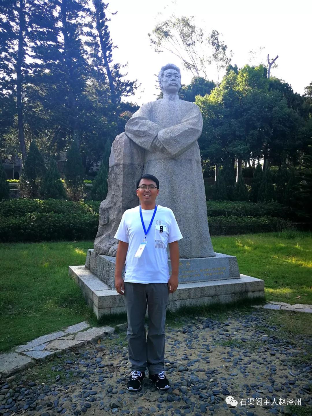 因常读书,我知道鲁迅先生应当时厦大文学院院长林语堂的邀请,曾于1926年9月4日至1927年1月16日在厦大任教。1952年,厦大还设立了鲁迅纪念馆,在鲁迅任教居住过的集美楼二楼。在厦大校园内一个显要之地,还立有鲁迅先生雕塑,庄严肃穆,一派宗师气象。我们自发地在这里合了影,以为留念。
