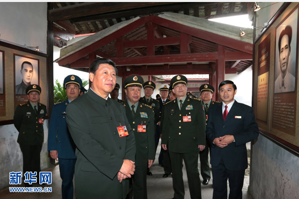 2014年10月31日,中共中央总书记、国家主席、中央军委主席习近平专程来到福建省上杭县古田镇,出席正在这里召开的全军政治工作会议。习近平同志带领中央军委全体成员和会议代表,参观古田会议会址、纪念馆,瞻仰毛主席纪念园,同老红军、军烈属代表座谈,和基层官兵同吃“红军饭”,观摩“红色印迹——红军标语展示”……一起重温我党我军光荣历史和优良传统,接受思想启迪和精神洗礼,引领开创新形势下军队政治工作创新发展的新局面。